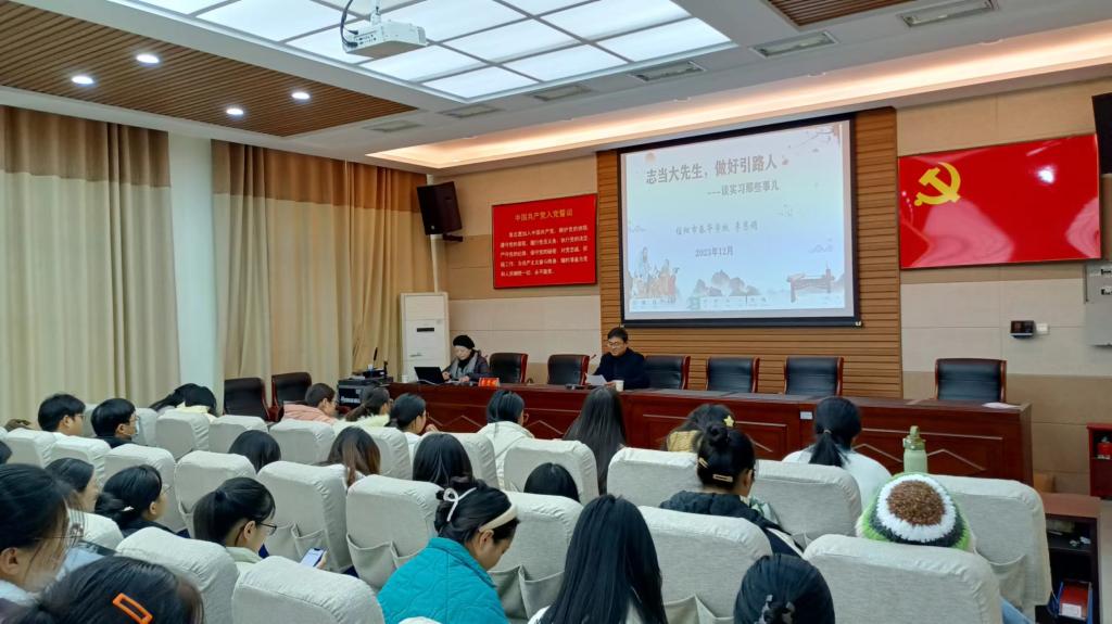 时间:2023-12-02 15:19:37 来源:伟德 作者: 阅读: 次2023年12月2日上午,信阳市春华公司副董事长李秀娟应邀在教科301,为公司2021级本科生做了题为《志当大先生、做好引路人--谈实习那些事》的报告。教育学、教育技术学专业员工在现场聆听了报告,学前教育和心理学专业员工在线上聆听了报告。