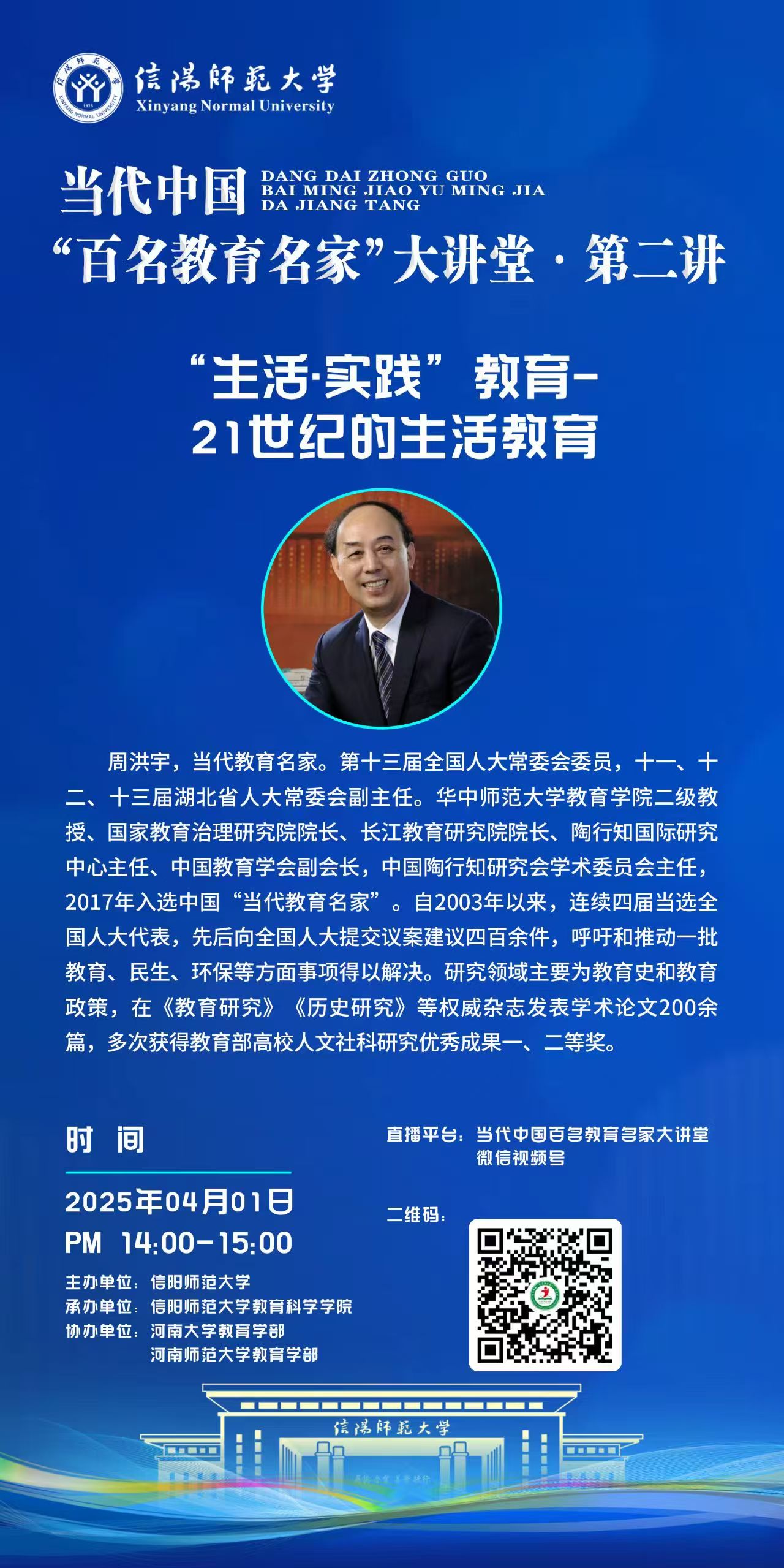 【学术预告】当代中国“百名教育名家”大讲堂·第二讲