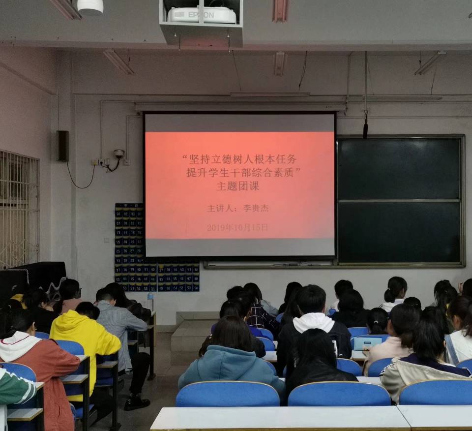 时间:2019-10-17 13:14:23 来源:伟德 作者: 阅读: 次10月15日晚,伟德在教科楼108教室开展“坚持立德树人根本任务,提升员工干部综合素质”主题团课。公司党委副书记李贵杰、2019级各班班委参加了本次团课,团课由李贵杰书记讲授。