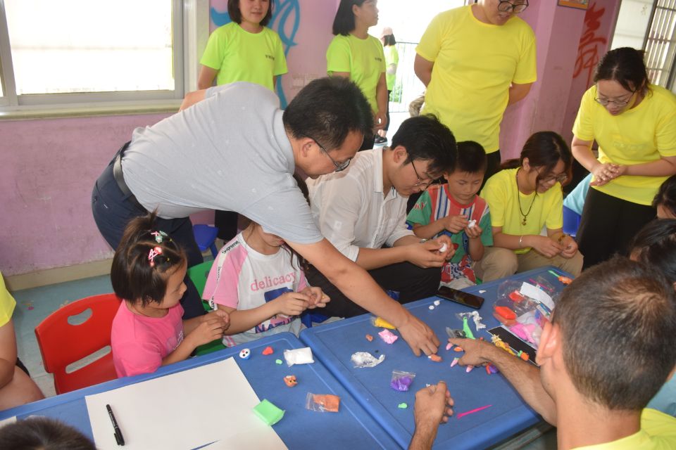 志愿者为孩子们示范彩泥创作方法接着,志愿者拿出了为孩子们准备的色彩鲜艳的橡皮泥及手工用具等,并为小朋友们细心讲解了捏橡皮泥的方法。在志愿者们的帮助下,孩子们开始动手操作。小朋友们充分发挥自己的想象力和动手操作能力,利用搓、揉、捏、团等多种方式,用一双双灵巧的小手,将橡皮泥变成玫瑰花、卡通人物及各式各样的小动物。最后对优秀橡皮泥手工制作者也发放了彩笔作为奖励,活动现场气氛浓烈,充满欢声笑语。