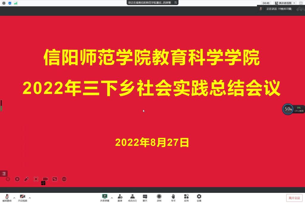 会上,53支社会实践团小组主要负责人轮流发言,针对本组实践内容、活动问题以及获得启发等展开分享交流。实践过程中,成员们坚守服务社会的初心,克服重重困难,始终保持团结协作精神,为最终三下乡社会实践的完成而努力奋斗。董欣瑶作总结发言,她肯定了本次三下乡社会实践中同学们的辛勤付出,同时鼓励大家走出校门、接触社会,不断累积实践经验,提升自身综合实力,用丰富的理论与实践知识回报社会。最后,她指出此次活动中存在的问题,组织成员们共同讨论解决方案,帮助大家拓展思维,增长才干。