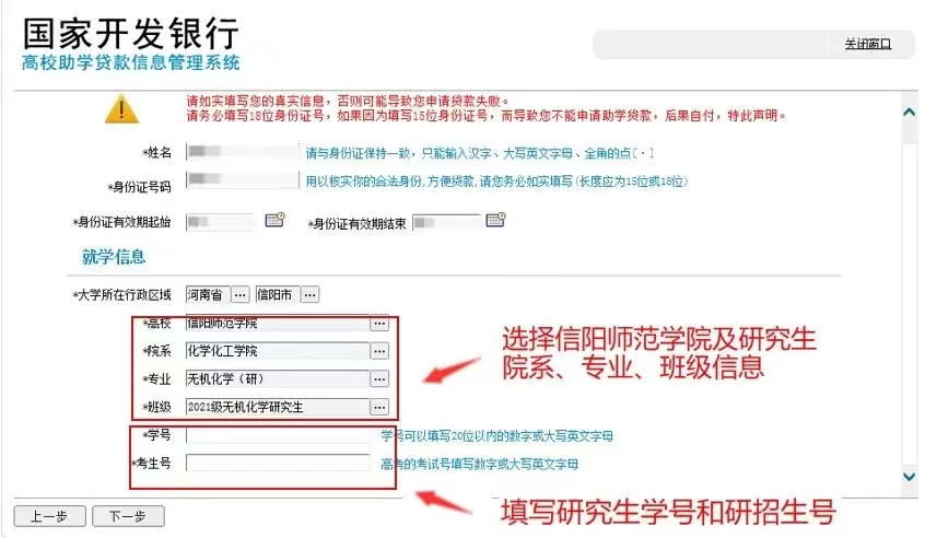 学号、考生号按照实际填写,学号是后续冲抵学费的重要依据,请务必、确保准确,本专科员工填写高招考试考生号,研究生填写研招考试考生号。