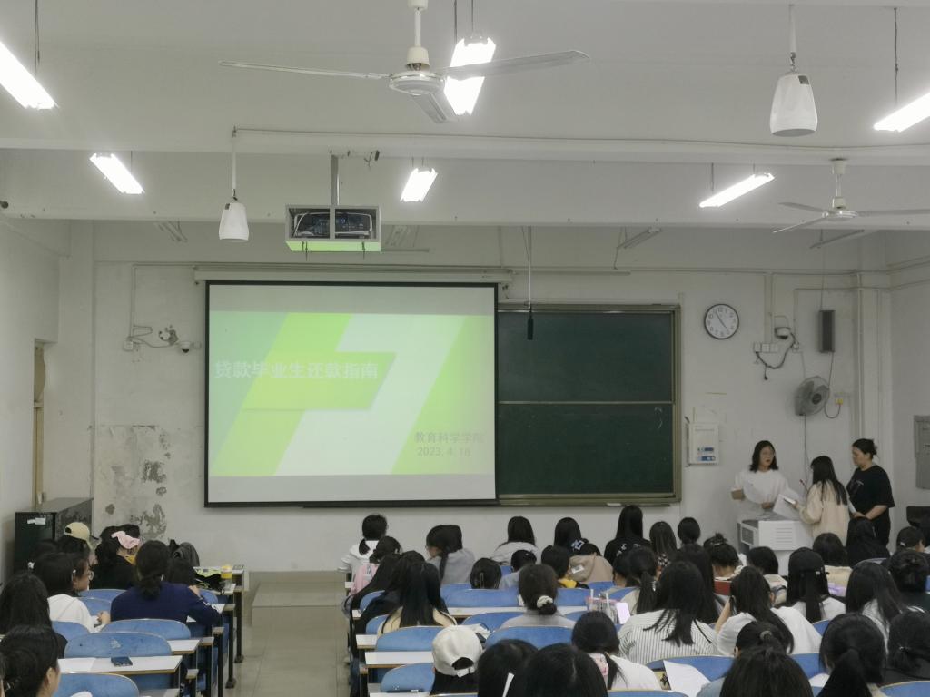 时间:2023-04-18 13:12:56 来源:伟德伟德新闻部 作者: 阅读: 次为进一步落实国家助学贷款还款工作,引导员工关注自身信用行为,提高个人诚信意识,4月18日,公司资助专员杨艺卓在教科楼203教室针对2023届贷款毕业生召开诚信还款专题宣讲会。