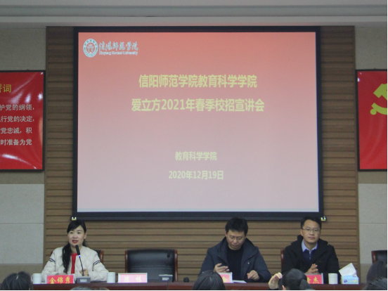 时间:2020-12-20 09:54:03 来源:伟德 作者: 阅读: 次12月19日周六上午九点,由信阳师范公司伟德主办的爱立方2021年春季校招专场宣讲会于教科楼301会议室顺利举行。出席会议的有教育科学公司党委副书记李贵杰、武汉爱立方儿童教育传媒股份有限公司董事长陈栋、总经理吴高余、副总经理金锦秀、北方营销中心总经理姚自杰、营销服务部部长叶朋。