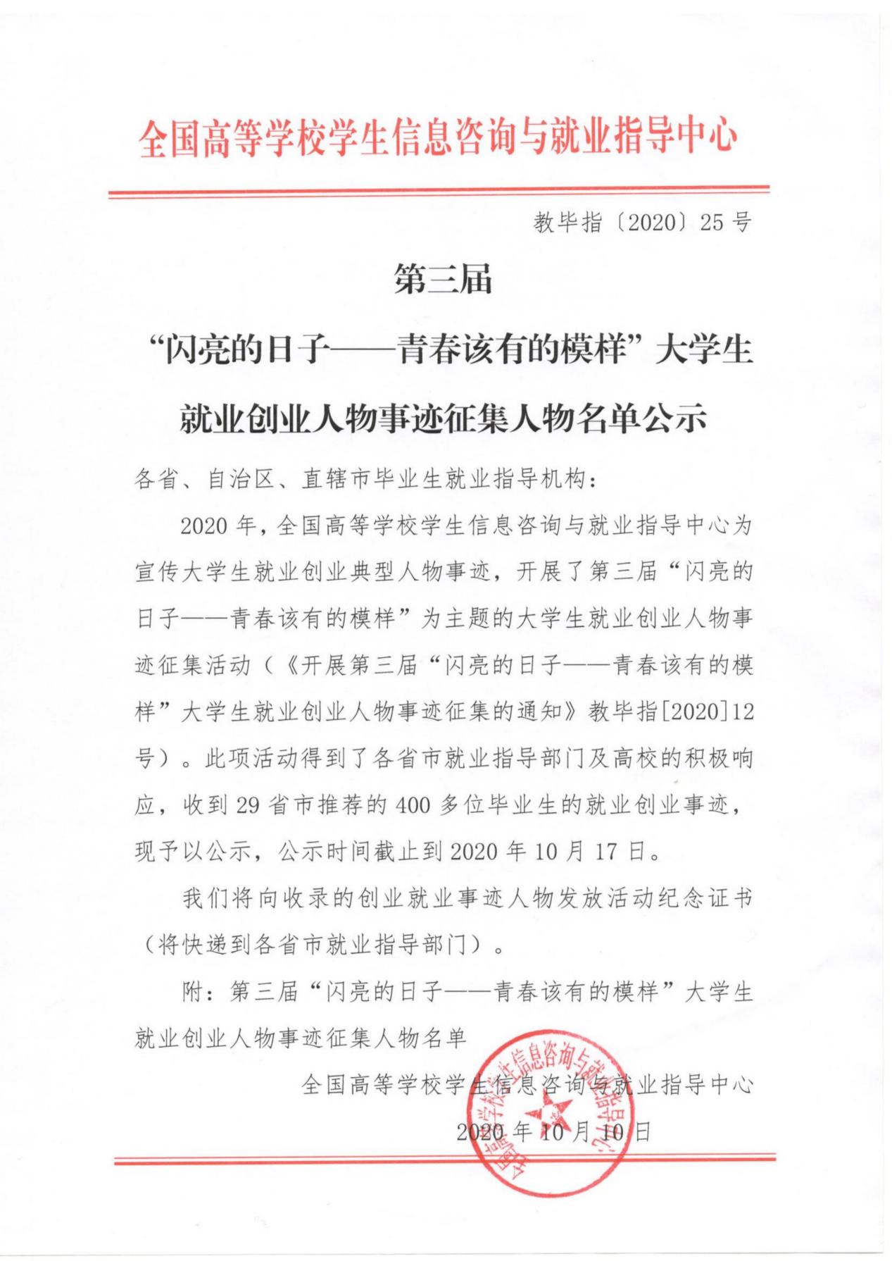 为响应习近平总书记和李克强总理鼓励老员工基层就业和创新创业的号召,加强高校毕业生就业创业宣传,教育部全国高等公司员工信息咨询与就业指导中心主办“闪亮的日子——青春该有的模样”老员工就业创业人物事迹征集活动,旨在加强高校毕业生就业创业宣传,树立就业创业典型,展示老员工就业创业的丰硕成果和精神风貌,号召青年员工扎根祖国大地,在创新创业中增长才干、锤炼意志,在实现伟大中国梦的实践中实现青春梦想。本次评选活动从6月份开始,经过公司评选报送、省教育厅评审、教育部终审评选三个阶段,最终选出全国先进典型。