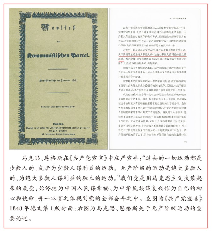我们党的初心和使命是建立在马克思主义科学理论基础之上的。马克思、恩格斯在《共产党宣言》中庄严宣告:“过去的一切运动都是少数人的,或者为少数人谋利益的运动。无产阶级的运动是绝大多数人的,为绝大多数人谋利益的独立的运动。”我们党是用马克思主义武装起来的政党,始终把为中国人民谋幸福、为中华民族谋复兴作为自己的初心和使命,并一以贯之体现到党的全部奋斗之中。忘记这个初心和使命,党就会改变性质、改变颜色,就会失去人民、失去未来。只要我们党牢牢坚持立党为公、执政为民,牢牢坚持为中国人民谋幸福、为中华民族谋复兴,不断检视自己,不掩饰缺点,不文过饰非,坚决同一切弱化党的先进性和纯洁性、危害党的肌体健康的现象作斗争,就一定能够始终立于不败之地。
