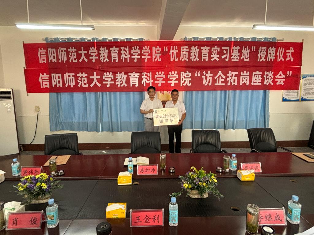 董银银代表公司分别与濮淮高级中学、陈棚乡初级中学签订了就业创业基地、教育实习基地建设协议书,房加帅代表公司向濮淮高级中学、陈棚乡初级中学授予“伟德体育教师教育协同培养基地”和“伟德体育就业创业基地”牌匾。