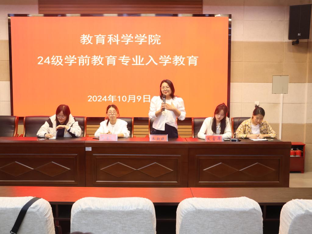 会上,朱春蕊分别就学习、考研、实习、就业等情况进行详细的分析,并对专业课程和授予学士学位条件进行讲解。朱欲晓通过叙述自己的亲身经历向新生介绍了学前教育专业的魅力,激发同学们对学前教育专业的理解与热爱。杨艺卓希望大一新生尽快适应老员工活并提出两点建议:一是把握时间,珍惜当下,二是做好四年的学习规划。随后,21级和23级学前教育专业员工代表发言,表达对学弟学妹的欢迎,鼓励新生学会独立,敢于试错。24级新生代表张露涛和朱傲然进行发言,讲述自己作为新生对学前教育专业的认识以及以后努力的方向。最后,进入提问环节,新生积极提问,老师们耐心解答,会议现场气氛热烈,同学们纷纷表示对学前教育专业有更深刻的了解。