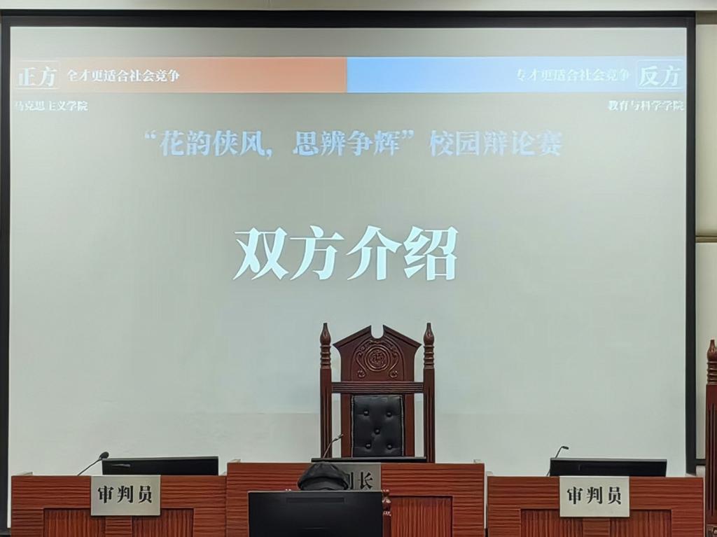 辩论赛开始,主持人介绍比赛规则,辩手分别上台进行自我介绍并向对方表示慰问。双方辩手开篇立论,通过展示通才和专才在社会领域竞争力的具体示例,稳固己方观点,对对方观点提出疑问。正方一辩提出全才在各个行业具有普遍适应能力,反方一辩则坚持专才可以凭借专业技能占据一个行业的高端地位不易被取代。随后双方自由辩论,对己方观点进行总结。反方指出在知识更迭速度超越个体能力的现代竞争中,专才通过垂直领域的持续压强投入更能构建智能化时代的核心竞争力。
