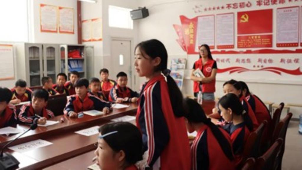 “星火传习”思想队在平顶山市西苑社区开展“童心筑梦,服务暖夏”活动,通过“撕纸游戏”“成语炸弹”等游戏,与社区小朋友进行知识互动,在团队合作过程中向孩子们讲述奋斗故事。同时关注社区环境问题,为老人科普环保知识,拉近与社区群众距离,让队员在奉献中深化责任与使命理解。