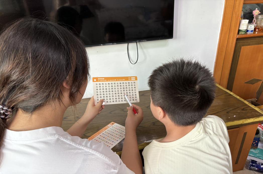 (实践团成员与儿童完成“字词大挑战”)