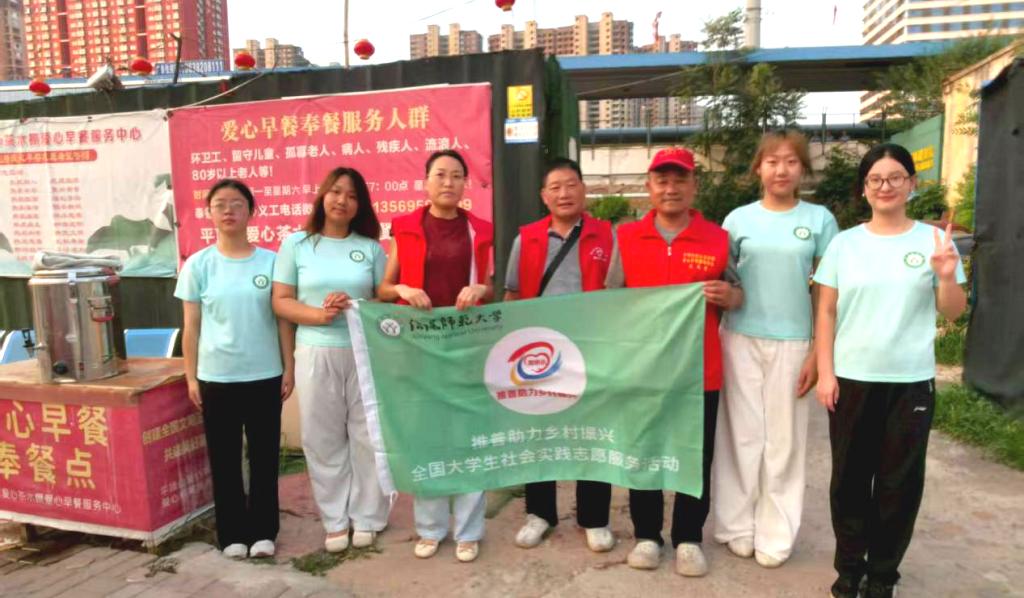 (推普实践团和爱心粥棚负责人合影)