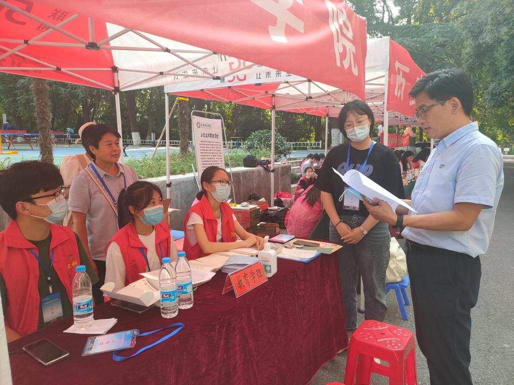 9月10日下午,教育科学公司党委书记房加帅、党委副书记董银银前往新生报道点,了解报到情况,确保迎新工作稳步推进。