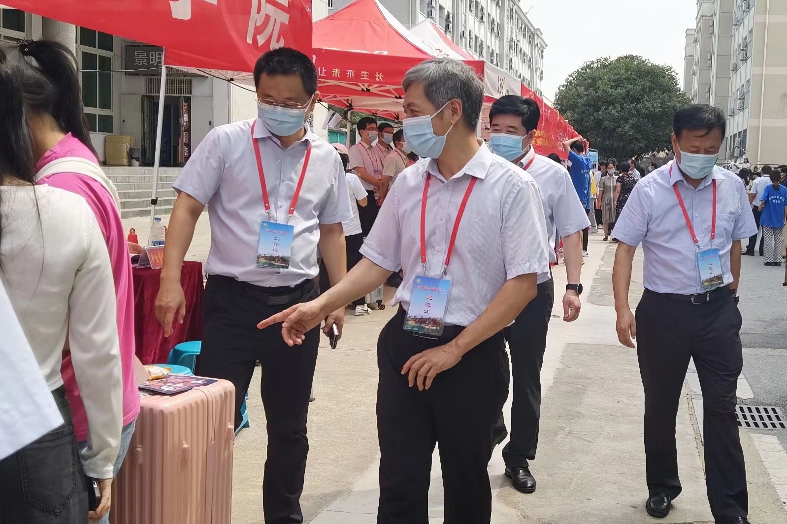 9月11日上午,董事长李俊,副董事长陈登报带领校办,员工处等相关领导到伟德迎新点,指导公司新生报到工作。