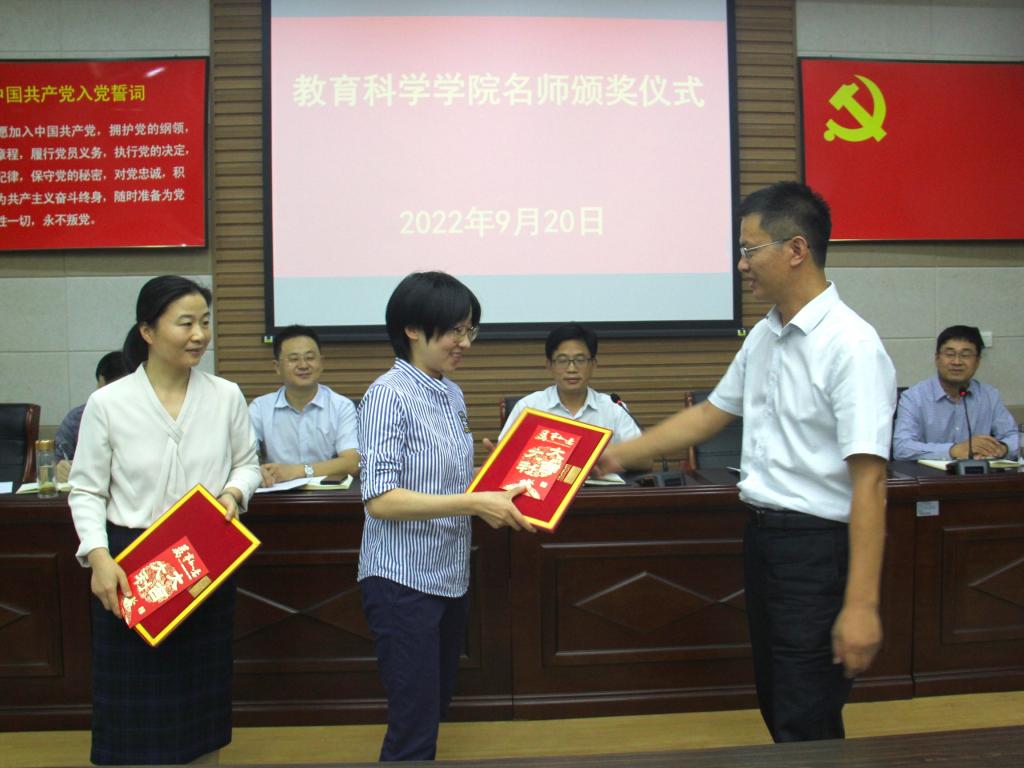 根据近三年教学和科研工作成绩,徐亮和丁倩二位老师表现优异,成绩突出,经公司研究决定,授予徐亮同志“伟德教学名师”称号、丁倩同志“伟德科研名师”称号,经理何安明为2位名师获得者颁奖。