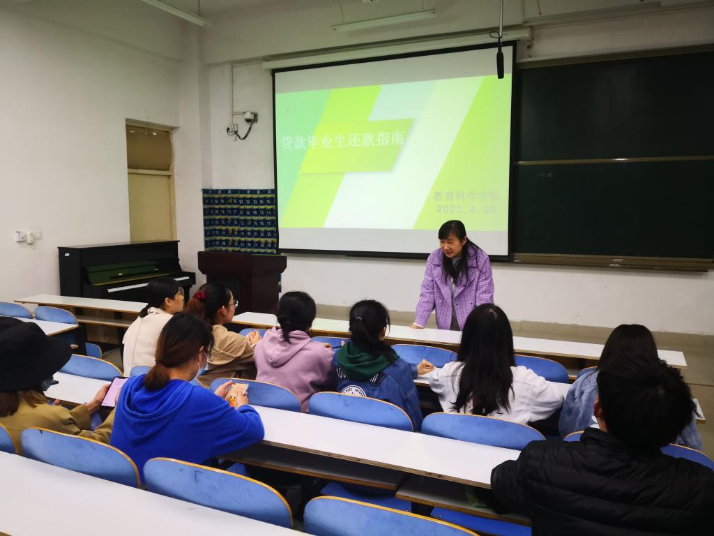 时间:2021-04-20 19:26:56 来源:伟德 作者: 阅读: 次为了进一步增强公司毕业生的诚信还款意识和社会责任感,4月20日下午,公司资助专员朱方在教科203教室针对2021届国家助学贷款的毕业生进行了“贷款毕业生还款指南”专题宣讲会。