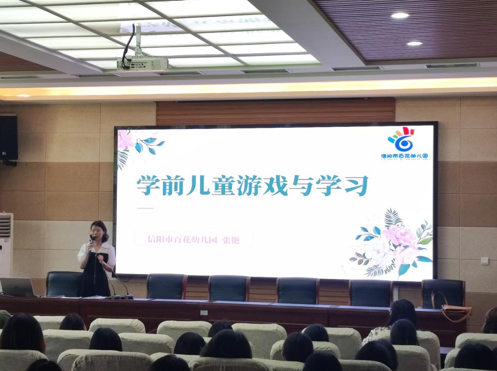 本次报告由朱欲晓老师介绍主持,张艳园长以游戏开场,然后开展以“学前儿童游戏与学习”为主题的分享,首先选取学前教育宣传月“守护育幼底线,成就美好童年”的宣传视频中游戏环节让大家观看。提出两个问题:视频中看到了什么?感受到了什么?引出问题2:家长不理解小朋友来幼儿园是玩儿的,游戏对家长更是一个考验。以这个问题为切入点开展本次的分享。通过规程中指南中,纲要中的理论依据并结合实践,幼儿园的生活都是跟游戏融合在一起的。观看视频案例,讲述游戏的概念、游戏的性质、游戏的类别等,请员工参与游戏,活跃气氛。
