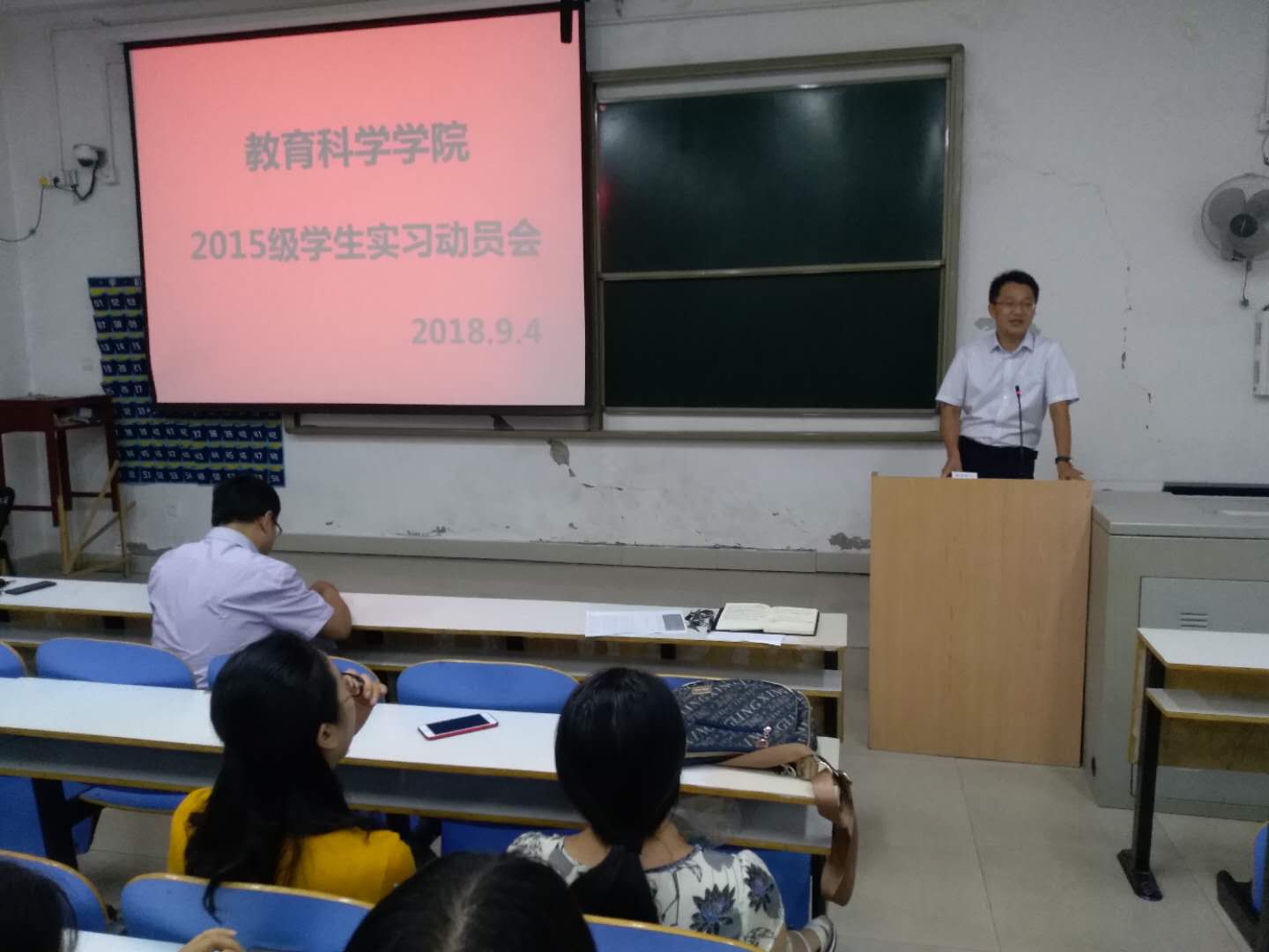 9月4日晚上,伟德2015级本科员工和2016级学前教育专科员工约300人,在教科楼108室召开实习动员会。伟德领导高度重视员工实习工作,参会人员有教学副经理郭勇、副书记李贵杰、班主任张纪娥老师、李慧丽老师。大会由黄伟玲老师主持,首先,副经理郭勇重点讲了实习的重要性,实习内容,并殷切希望同学们充分利用实习机会提高自己。