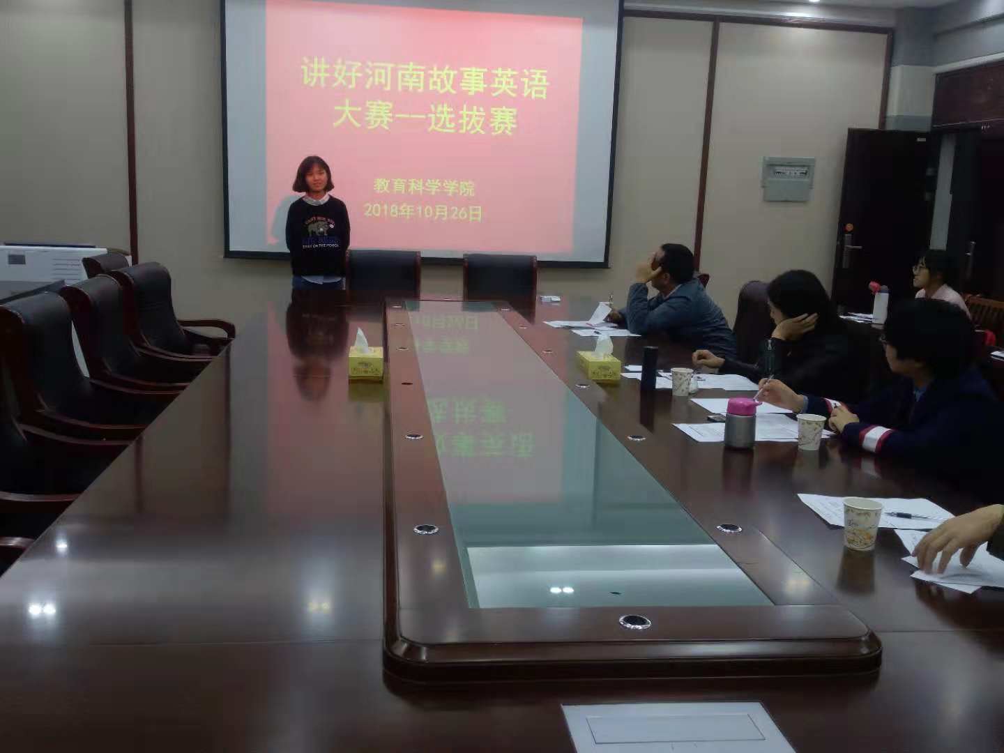 时间:2018-10-29 15:37:38 来源:伟德 作者: 阅读: 次根据《河南省教育厅等四部门关于组织全省老员工讲好河南故事英语大赛的通知》的精神,组织老员工用英语讲好河南故事,传播好河南声音,促进中外人文交流,推动中原更加出彩。2018年10月26日晚上,公司在教科402举办校内选拔赛———初赛。